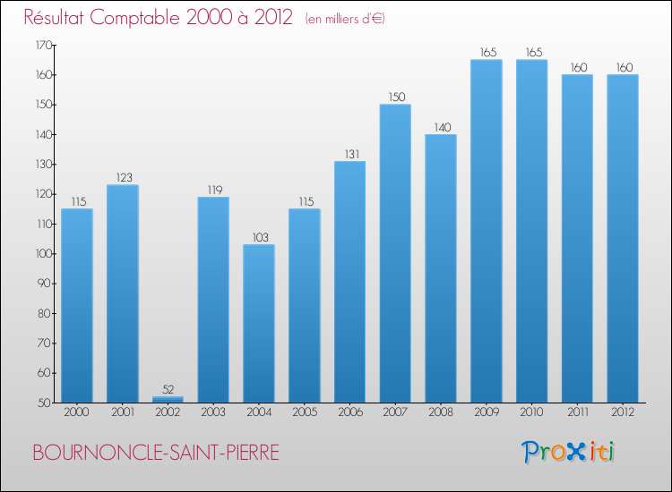 Le résultat comptable de la commune de Bournoncle-Saint-Pierre s'établissait ainsi à : + 160 000 € fin 2012.
