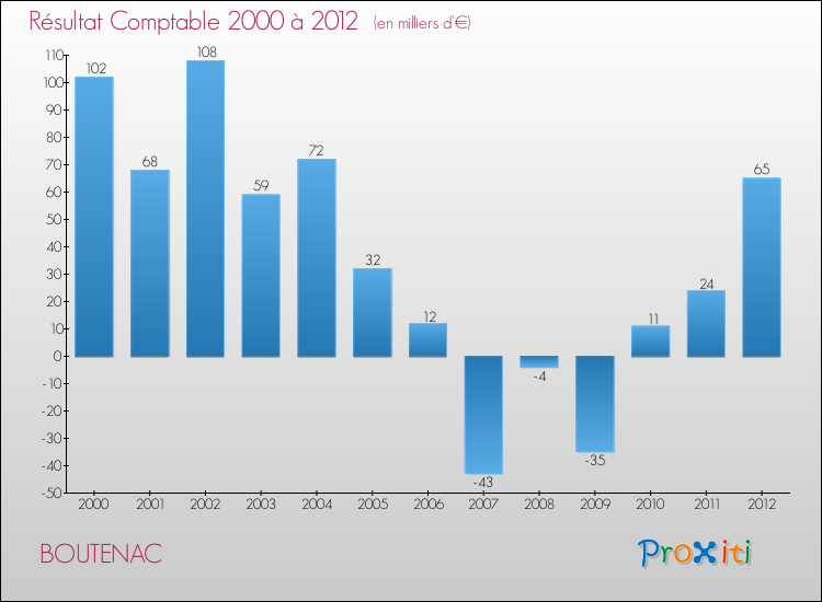 Le résultat comptable de la commune de Boutenac s'établissait ainsi à : + 65 000 € fin 2012.