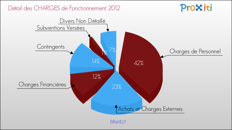 En 2012, les charges de fonctionnement de la commune de Brévilly étaient de : 233 000 € décomposées comme suit :