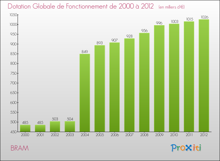 Le résultat comptable de la commune de Bram s'établissait ainsi à : + 823 000 € fin 2012.