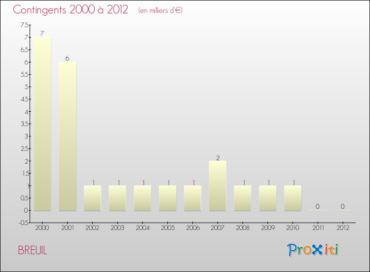 Le résultat comptable de la commune de Breuil s'établissait ainsi à : + 1 000 € fin 2012.