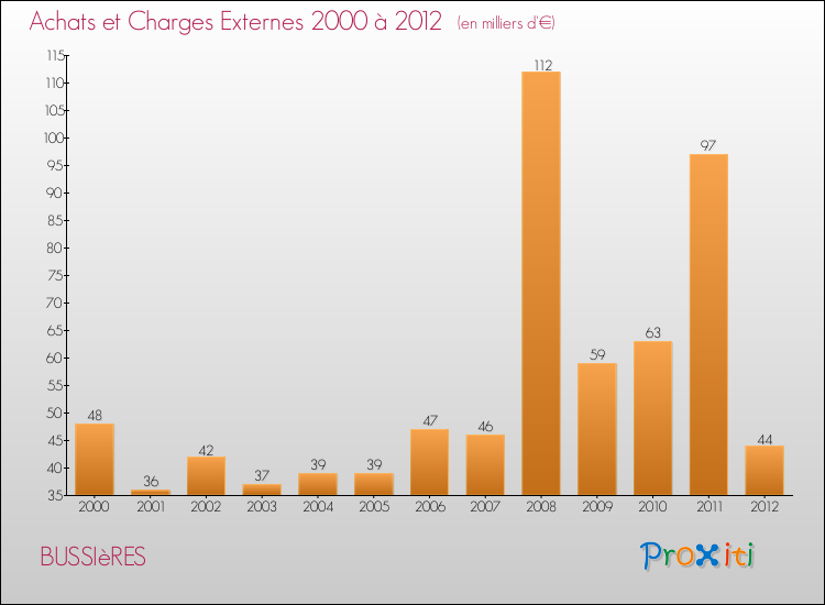 En 2012, les charges de fonctionnement de la commune de Bussières étaient de : 157 000 € décomposées comme suit :