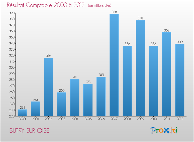 Le résultat comptable de la commune de Butry-sur-Oise s'établissait ainsi à : + 339 000 € fin 2012.