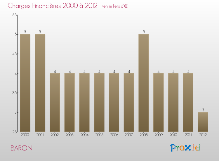 En 2012, le budget de fonctionnement de la commune de Baron se montait à : 144 000 € décomposé comme suit :