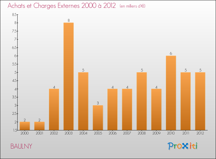 En 2012, les charges de fonctionnement de la commune de Baulny étaient de : 11 000 € décomposées comme suit :