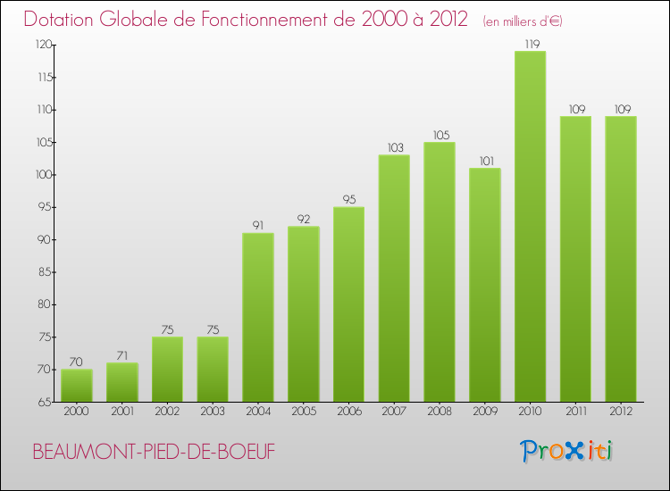 Le résultat comptable de la commune de Beaumont-Pied-de-Boeuf s'établissait ainsi à : + 108 000 € fin 2012.