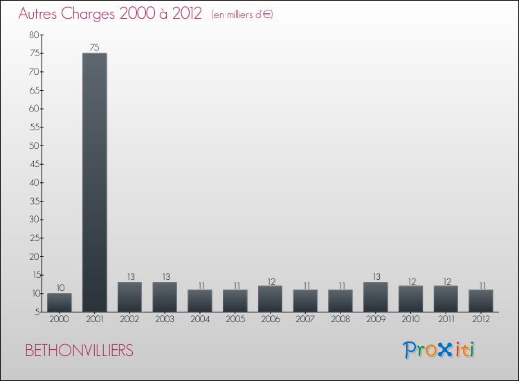 En 2012, les charges de fonctionnement de la commune de Bethonvilliers étaient de : 121 000 € décomposées comme suit :