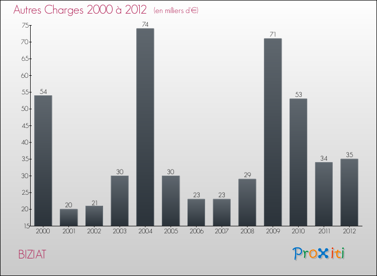En 2012, les charges de fonctionnement de la commune de Biziat étaient de : 400 000 € décomposées comme suit :