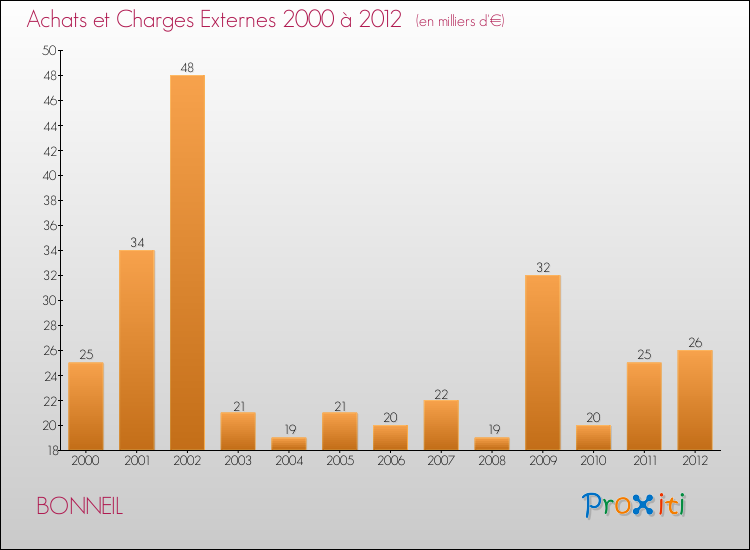 En 2012, les charges de fonctionnement de la commune de Bonneil étaient de : 89 000 € décomposées comme suit :