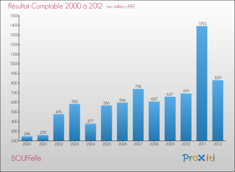 Le résultat comptable de la commune de Boufféré s'établissait ainsi à : + 829 000 € fin 2012.