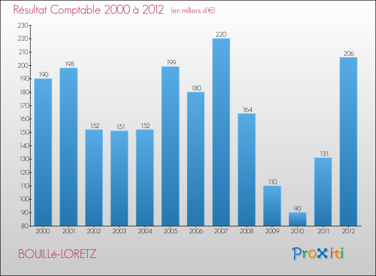 Le résultat comptable de la commune de Bouillé-Loretz s'établissait ainsi à : + 206 000 € fin 2012.