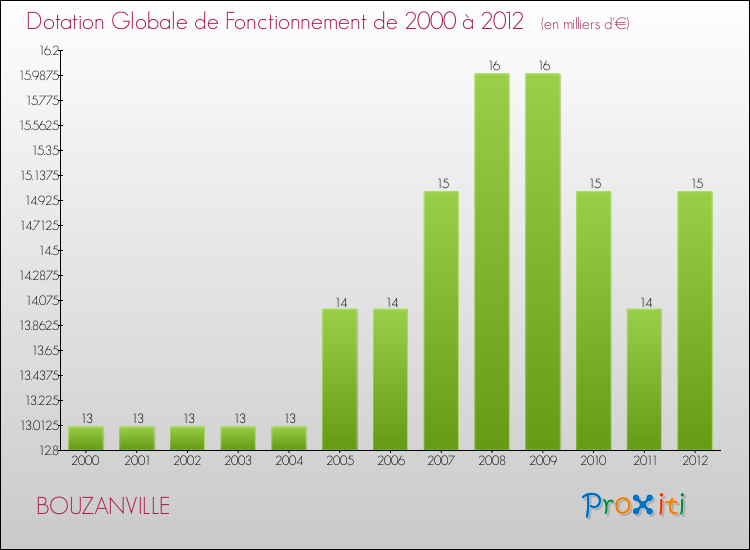Le résultat comptable de la commune de Bouzanville s'établissait ainsi à : + 12 000 € fin 2012.