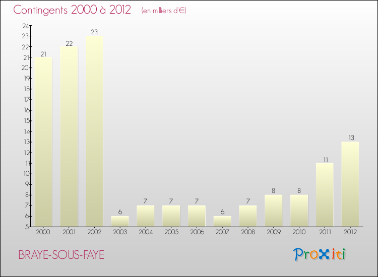 En 2012, le budget de fonctionnement de la commune de Braye-sous-Faye se montait à : 208 000 € décomposé comme suit :