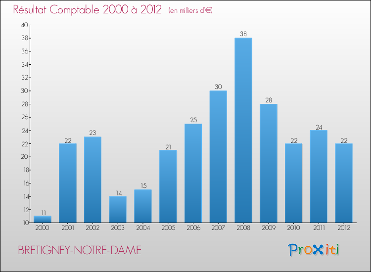 Le résultat comptable de la commune de Bretigney-Notre-Dame s'établissait ainsi à : + 22 000 € fin 2012.