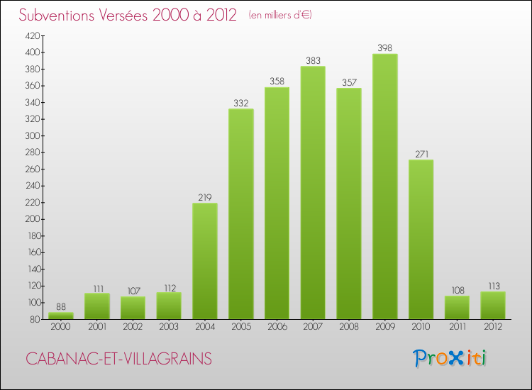 Le résultat comptable de la commune de Cabanac-et-Villagrains s'établissait ainsi à : + 181 000 € fin 2012.