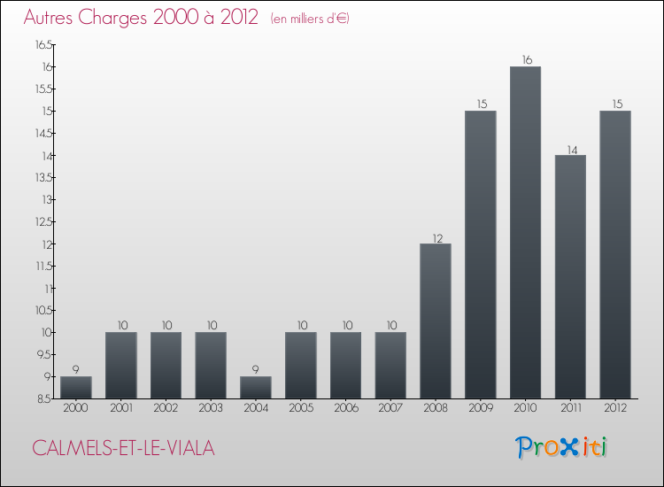 En 2012, les charges de fonctionnement de la commune de Calmels-et-le-Viala étaient de : 89 000 € décomposées comme suit :
