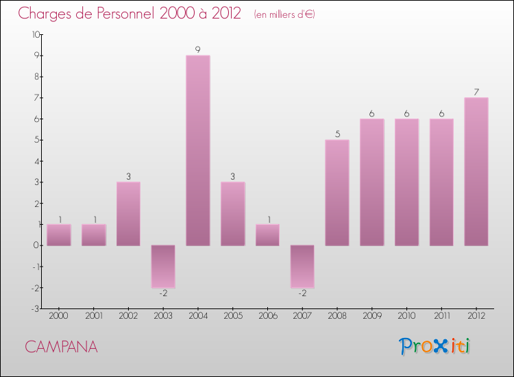 En 2012, le budget de fonctionnement de la commune de Campana se montait à : 59 000 € décomposé comme suit :