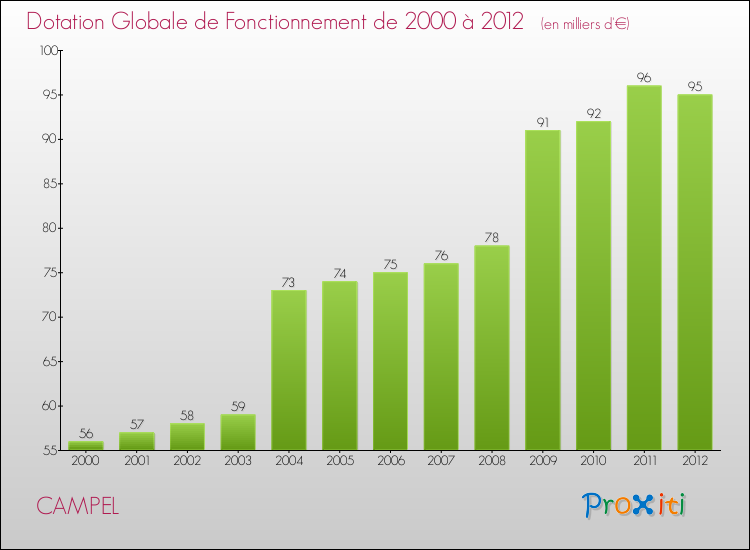 En 2012, le budget de fonctionnement de la commune de Campel se montait à : 317 000 € décomposé comme suit :