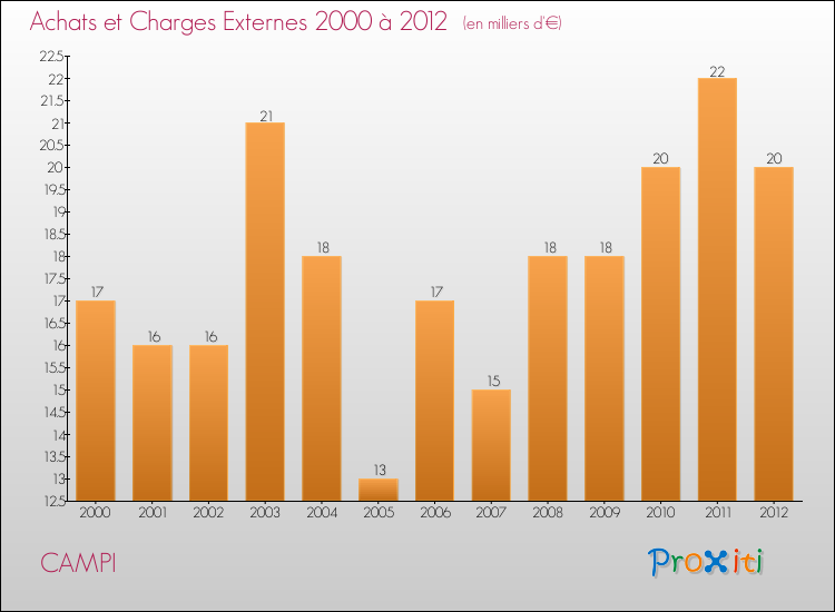 En 2012, les charges de fonctionnement de la commune de Campi étaient de : 46 000 € décomposées comme suit :