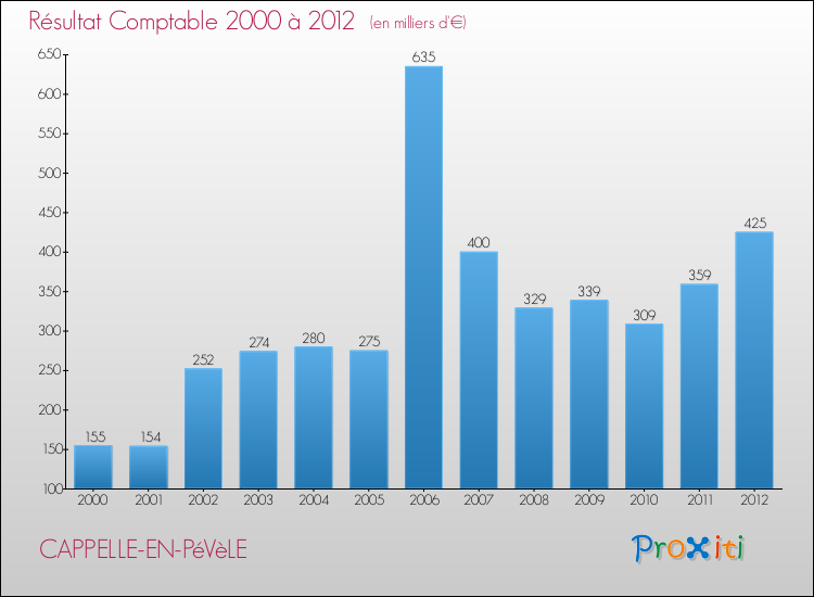 Evolution du résultat comptable pour CAPPELLE-EN-PéVèLE de 2000 à 2012