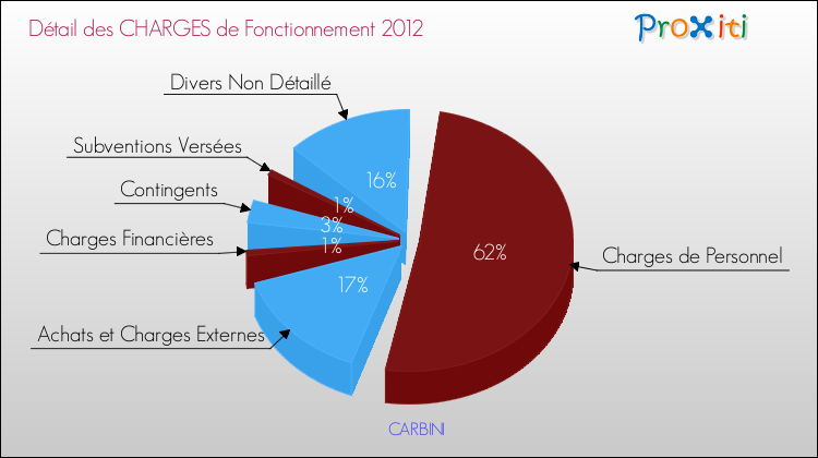 En 2012, les charges de fonctionnement de la commune de Carbini étaient de : 115 000 € décomposées comme suit :