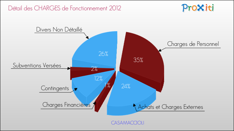 En 2012, les charges de fonctionnement de la commune de Casamaccioli étaient de : 211 000 € décomposées comme suit :