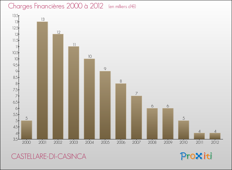 En 2012, les charges de fonctionnement de la commune de Castellare-di-Casinca étaient de : 355 000 € décomposées comme suit :