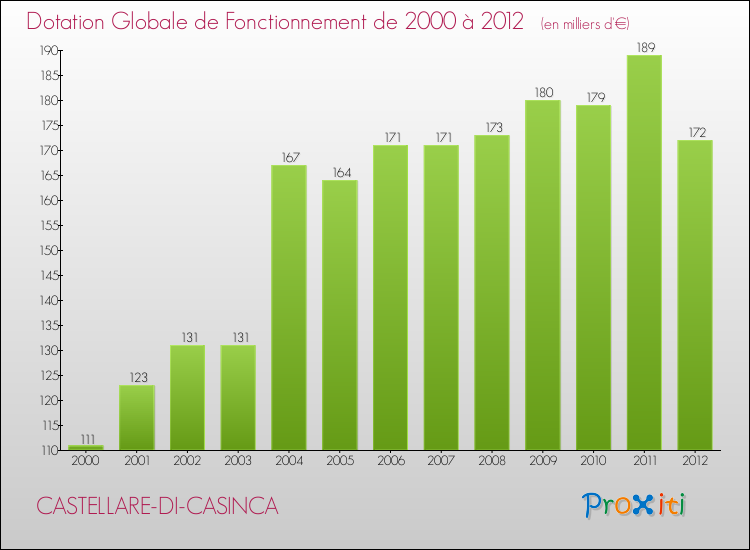 En 2012, le budget de fonctionnement de la commune de Castellare-di-Casinca se montait à : 418 000 € décomposé comme suit :