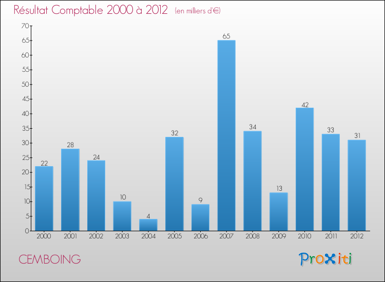 Le résultat comptable de la commune de Cemboing s'établissait ainsi à : + 31 000 € fin 2012.
