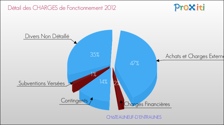 En 2012, les charges de fonctionnement de la commune de Châteauneuf-d'Entraunes étaient de : 83 000 € décomposées comme suit :