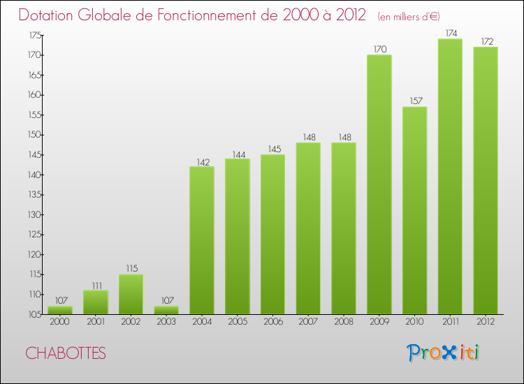 En 2012, le budget de fonctionnement de la commune de Chabottes se montait à : 771 000 € décomposé comme suit :