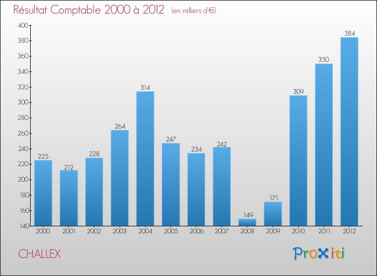 Le résultat comptable de la commune de Challex s'établissait ainsi à : + 384 000 € fin 2012.