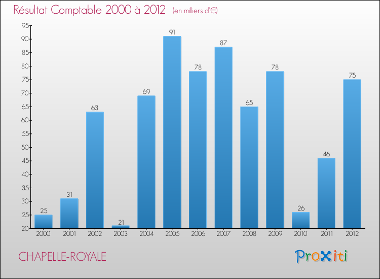 Le résultat comptable de la commune de Chapelle-Royale s'établissait ainsi à : + 75 000 € fin 2012.