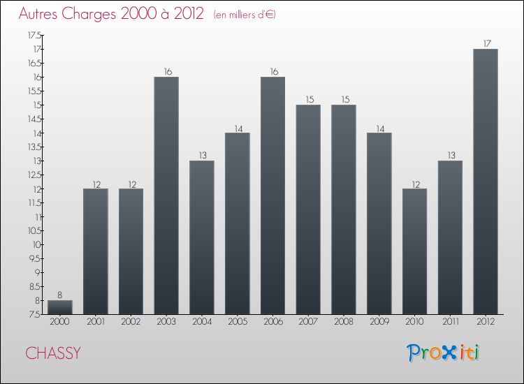 En 2012, les charges de fonctionnement de la commune de Chassy étaient de : 154 000 € décomposées comme suit :