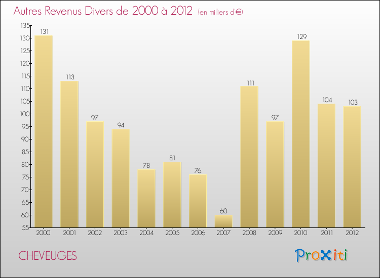 En 2012, le budget de fonctionnement de la commune de Cheveuges se montait à : 289 000 € décomposé comme suit :