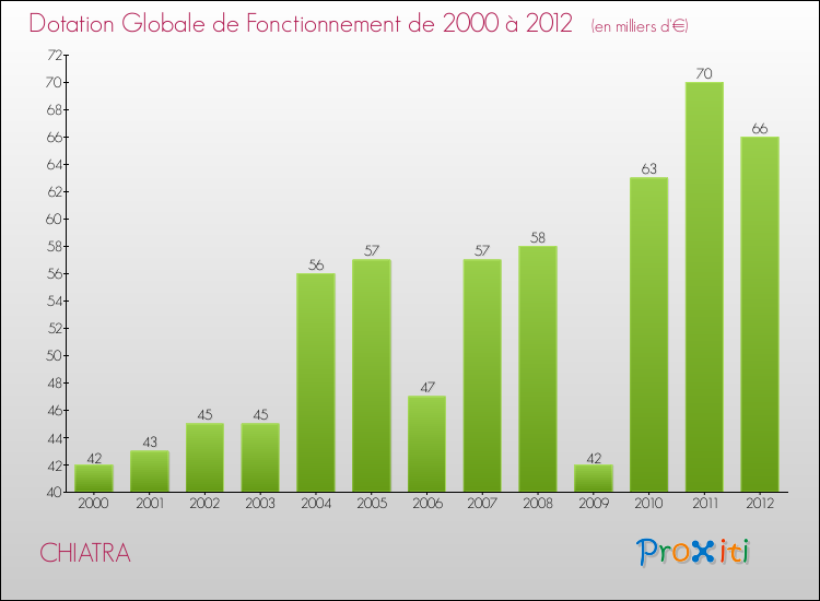 En 2012, le budget de fonctionnement de la commune de Chiatra se montait à : 208 000 € décomposé comme suit :