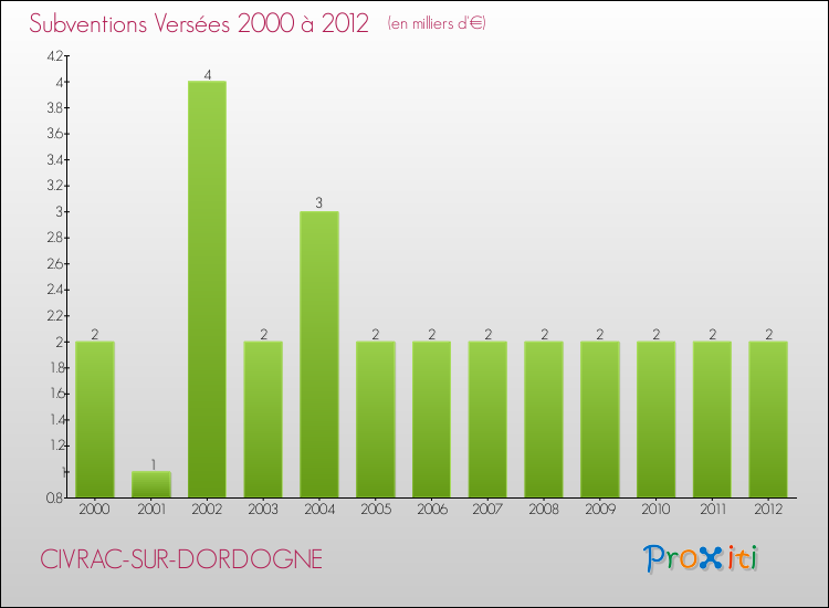 Evolution du résultat comptable pour CIVRAC-SUR-DORDOGNE de 2000 à 2012