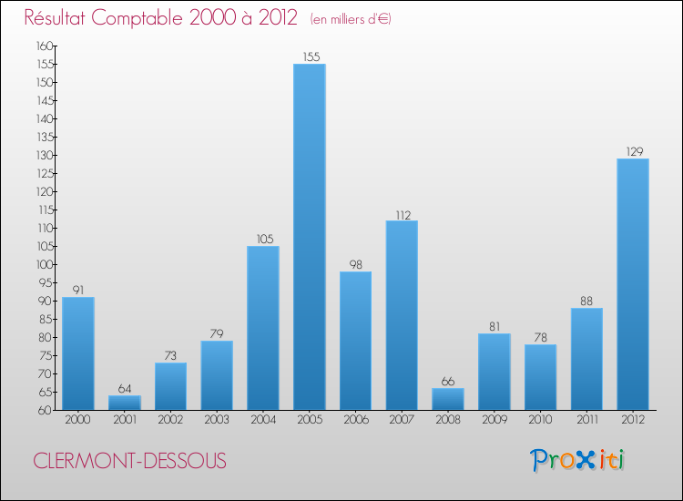 Le résultat comptable de la commune de Clermont-Dessous s'établissait ainsi à : + 129 000 € fin 2012.