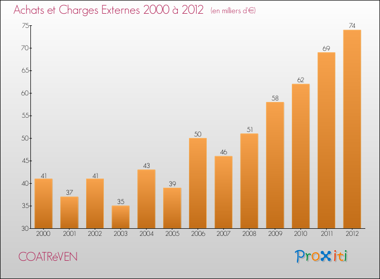 En 2012, les charges de fonctionnement de la commune de Coatréven étaient de : 264 000 € décomposées comme suit :