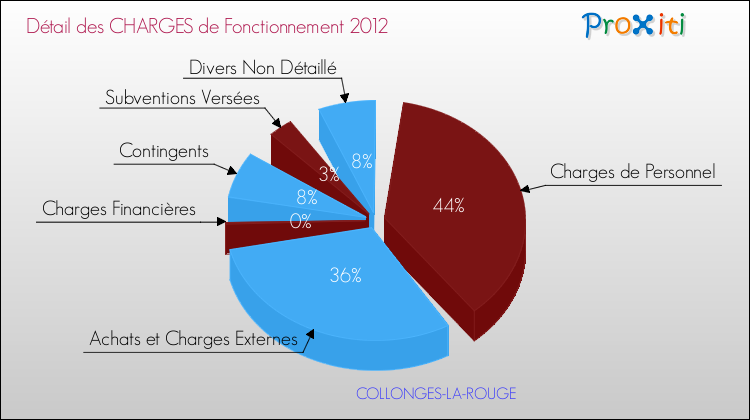 En 2012, les charges de fonctionnement de la commune de Collonges-la-Rouge étaient de : 360 000 € décomposées comme suit :