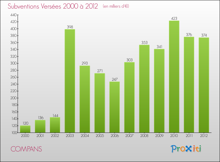 - Subventions Versées (aux associations et établissements publics) : 374 000 €