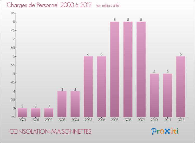 En 2012, les charges de fonctionnement de la commune de Consolation-Maisonnettes étaient de : 49 000 € décomposées comme suit :
