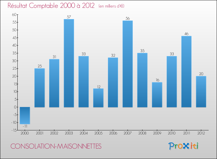 Le résultat comptable de la commune de Consolation-Maisonnettes s'établissait ainsi à : + 20 000 € fin 2012.
