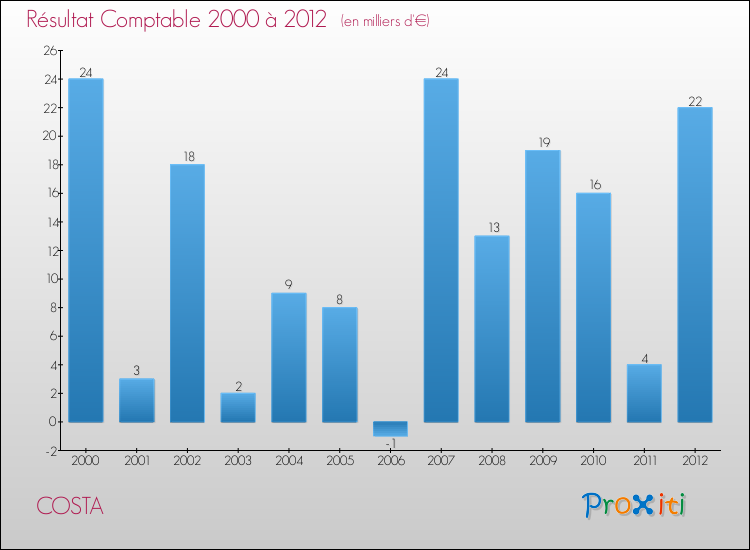 Le résultat comptable de la commune de Costa s'établissait ainsi à : + 22 000 € fin 2012.