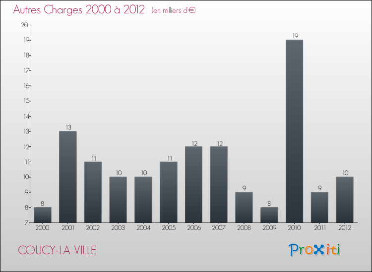 En 2012, les charges de fonctionnement de la commune de Coucy-la-Ville étaient de : 60 000 € décomposées comme suit :