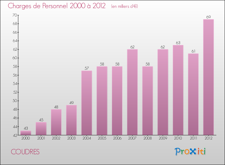 En 2012, les charges de fonctionnement de la commune de Coudres étaient de : 264 000 € décomposées comme suit :