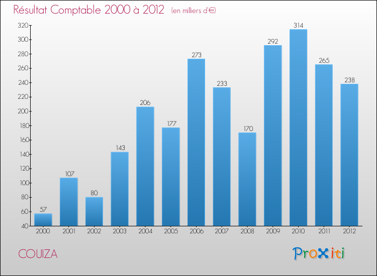Le résultat comptable de la commune de Couiza s'établissait ainsi à : + 238 000 € fin 2012.