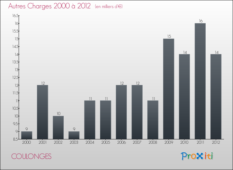 En 2012, les charges de fonctionnement de la commune de Coulonges étaient de : 110 000 € décomposées comme suit :