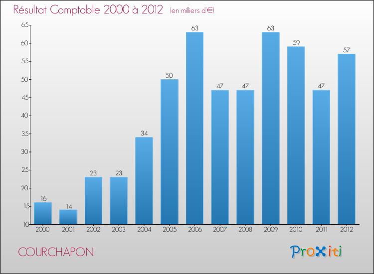 Le résultat comptable de la commune de Courchapon s'établissait ainsi à : + 57 000 € fin 2012.