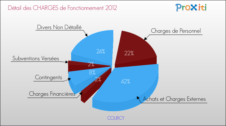 En 2012, les charges de fonctionnement de la commune de Courcy étaient de : 50 000 € décomposées comme suit :